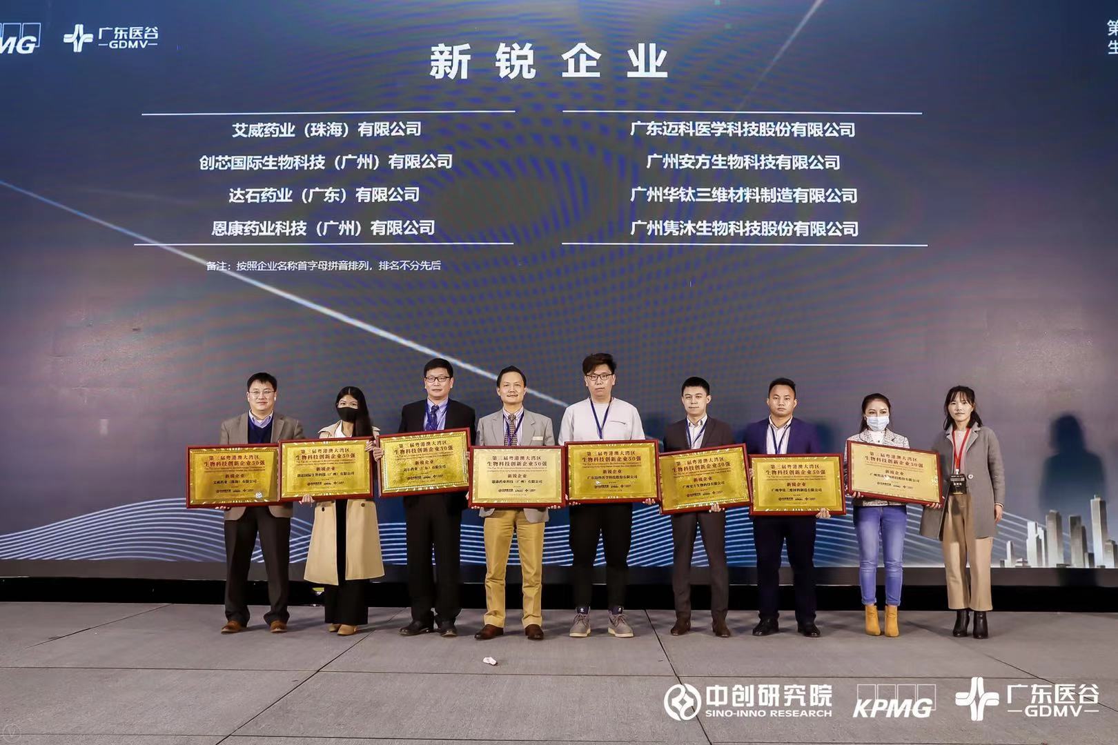 12月23日,第三届粤港澳大湾区生物科技创新企业50强颁奖典礼在广州南沙举办,达石药业(广东)有限公司荣登50强榜单,获得“新锐企业奖”。